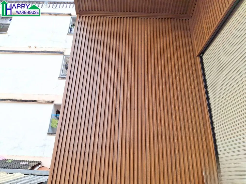 ผนังภายนอก เมทอลชีทลายไม้สีน้ำตาล รวมโครง
